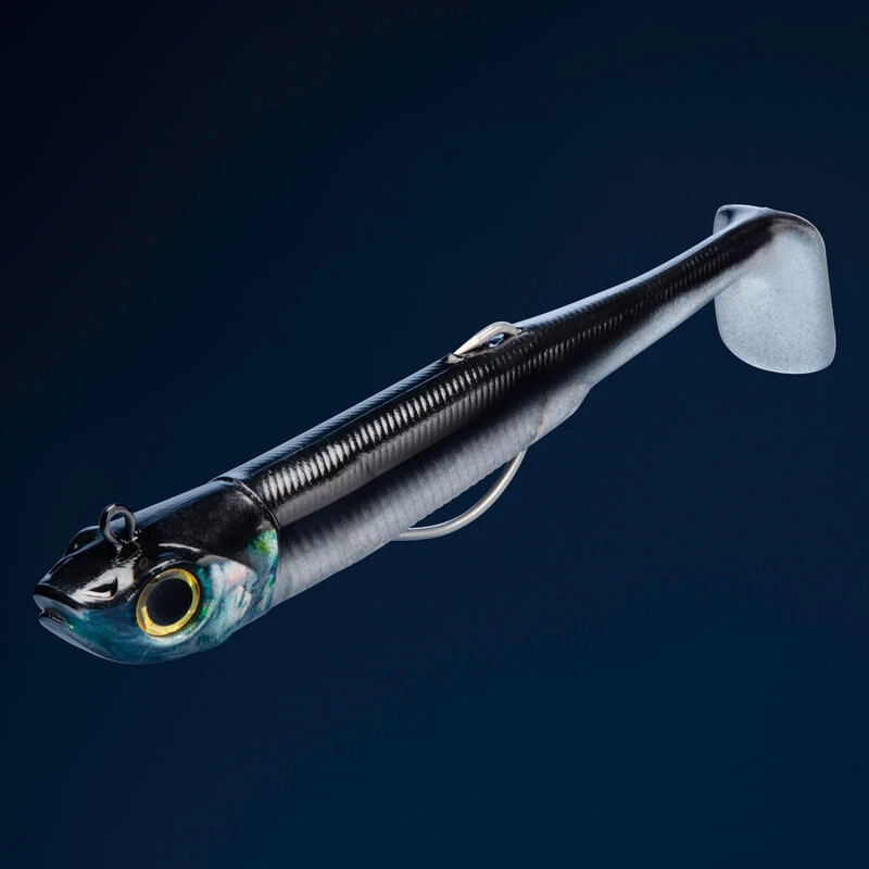 Nous avons développé cette forme d’anchois 3D pour toutes les pêches en lancer-ramener entre deux eaux, près du fond ou en verticale. La nage de type « Paddle » émet de fortes vibrations grâce au « frétillement » et au balancement de la caudale.