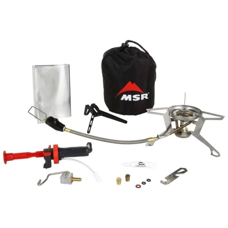Cuisinière universelle à carburants multiples, avec réservoir externe ! Brûle du gaz, du fuel Coleman, de l’essence sans plomb, des alcools et de l’huile de lampe. Livrée avec 3 buses, une clé de