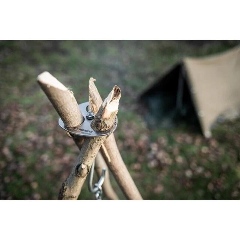 Construisez facilement un pratique support à 3 pieds pour votre feu de camp avec seulement 3 bâtons. Comprend une croche pour suspendre une chaîne.